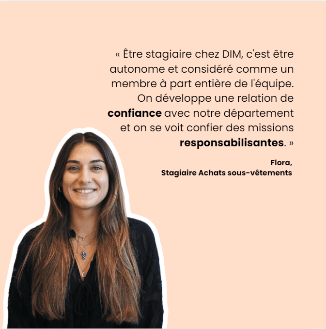 Lors de votre arrivée chez DIM en tant que stagiaire ou alternant, vous serez rapidement intégré(e) au sein de vos équipes et bénéficierez dès les premières semaines d'un large éventail de formations. Les managers accordent une grande autonomie, favorisant une relation de confiance qui se construit très rapidement. Par ailleurs, l’équipe RH organise régulièrement des événements dédiés à votre promotion, afin de renforcer les liens entre les différents secteurs et d'encourager les échanges. (afterworks dans Paris, activités, ateliers…) Tout au long de votre expérience dans la DIM family, vous serez accompagné par vos managers et l’équipe RH pour faire des points de suivi au sujet du bon déroulement de votre stage/alternance. Vous retrouverez  un ensemble de témoignages de nos anciens stagiaires qui expliquent leurs expériences et ce qui les a le plus marqué chez DIM. Vous pouvez également découvrir un ensemble de photos dans notre galerie média pour vous projeter dans l’expérience DIM.