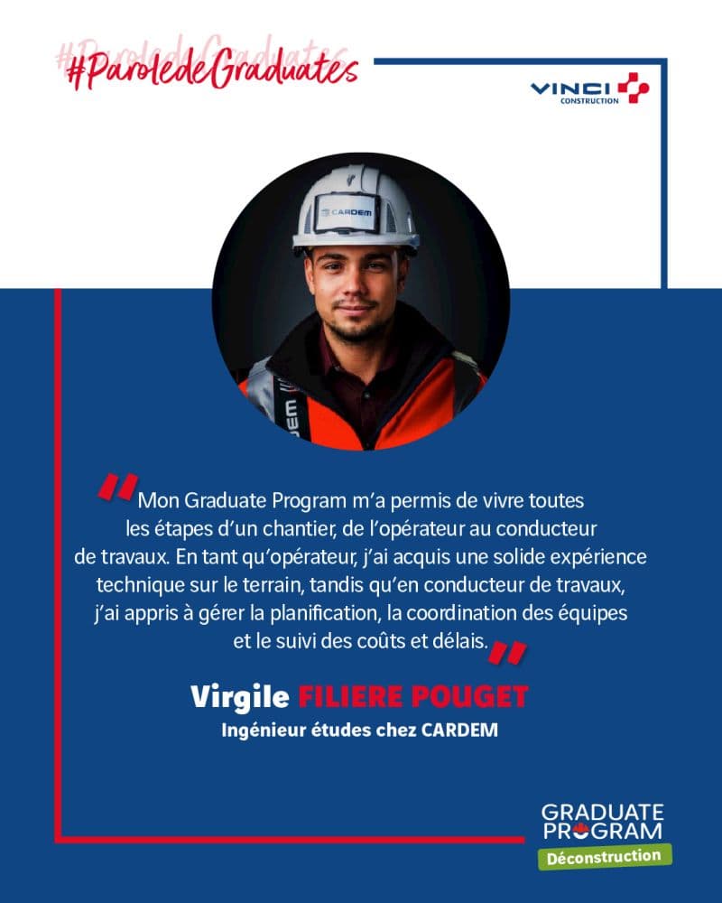 Grâce au Graduate Program #Déconstruction, il a découvert toutes les facettes d’un chantier avant de devenir ingénieur études de prix.