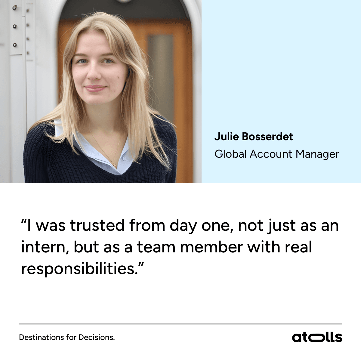 💬 Her thoughts? “The experience at Atolls is real. You’re trusted, supported, and constantly learning.”