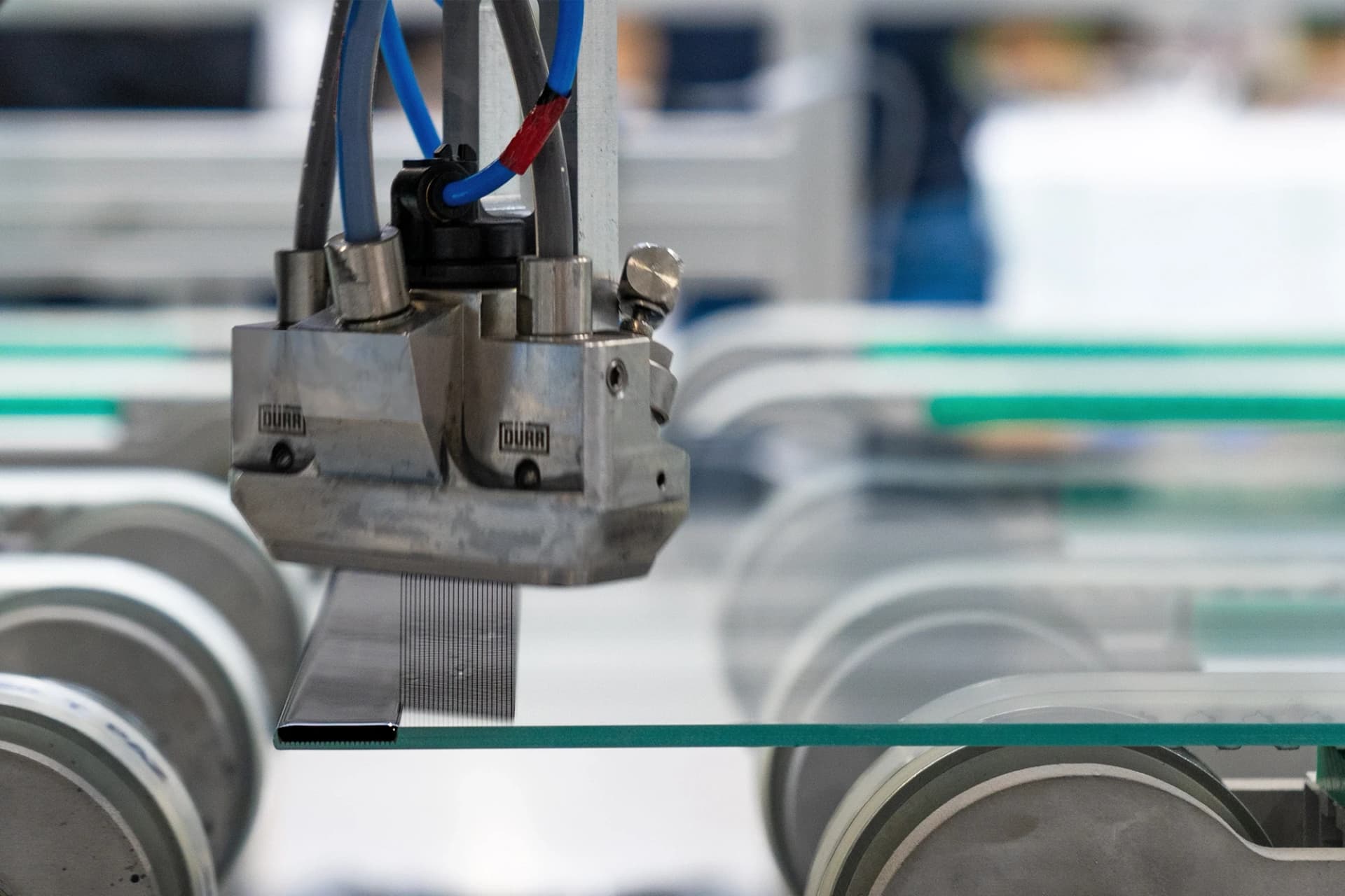 Bei der Implementierung erwies sich als größte Herausforderung, eine geeignete Lackkomposition für die Anwendung auf Glasoberflächen zu finden. Dürr arbeitete dabei mit einem langjährigen Partner der Firma PAN-DUR, dem Lackspezialisten Votteler zusammen. Projektverantwortlicher Uwe Schmidt erklärt: „Die Lackierung von Glasoberflächen stellt hohe Anforderungen, hier braucht es speziell entwickelte Lacke, die hinsichtlich ihrer Rheologie, Deckkraft und Partikelverteilung perfekt auf die Anlage abgestimmt sind. Deshalb brauchte es einige Proberunden, bis wir den geeigneten Lack gefunden hatten – aber dann waren wir erfolgreich.“