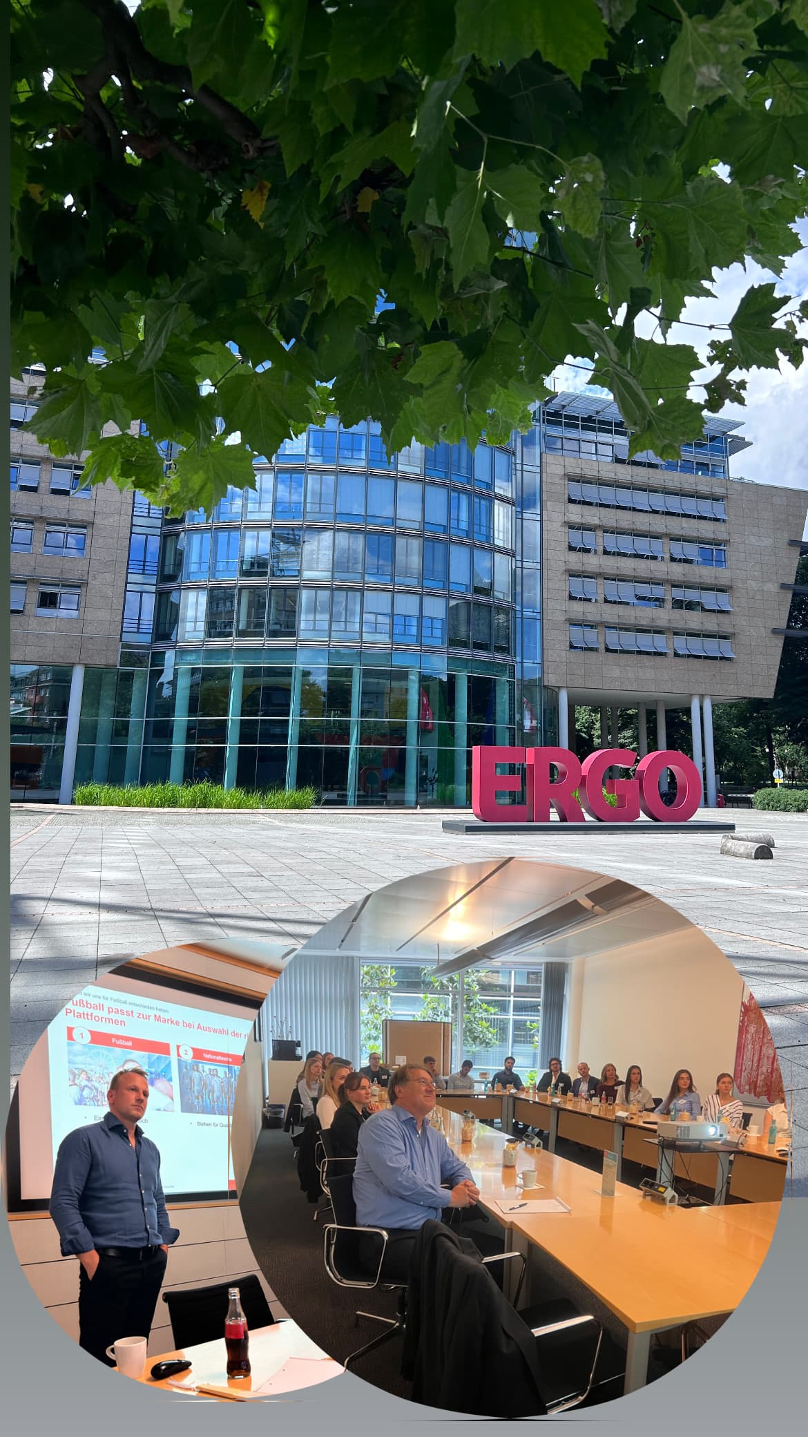 Sie erhielten Einblicke ins Sponsoring des DFB – ein praxisnahes Highlight im Rahmen eines aktuellen Studienprojekts. Darüber hinaus erfuhren die Studierenden mehr über Karriereperspektiven bei ERGO, von Praktika und Werkstudierenden-Tätigkeiten über das Trainee-Programm bis hin zum Direkteinstieg, mit einem besonderen Augenmerk auf der digitalen Transformation.