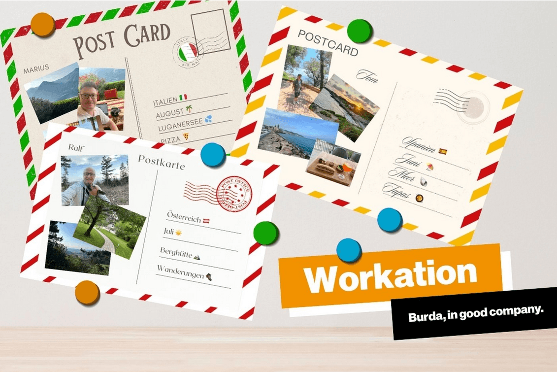 Mitarbeitende des Burdaversums machen das ganze Jahr über Workation. Dabei sind die Sommermonate am beliebtesten. Nun erreichten uns drei Postkarten aus… … Österreich Ralf Kimpel, Direktor Corporate Audit, Risk & Insurance der Hubert Burda Media Holding KG, schreibt uns von einer Berghütte aus dem schönen Naturpark Hohe Wand in Österreich. Mit dabei: Seine Frau und Hündin Yara. Um Arbeit und Freizeit bewusster zu verbinden, entschied sich Ralf für eine Workation mit seiner Familie. Die Vorbereitung war dabei entscheidend: Aufgaben wurden im Voraus geplant, Termine abgestimmt und Zeitfenster für kreative Themen reserviert. Vor Ort gestaltete sich der Alltag als ausgewogene Mischung aus Meetings, Spaziergängen mit Hund Yara und dem Erkunden der Umgebung – inklusive erster Versuche im niederösterreichischen Dialekt. Sein Fazit: „Diese Spaziergänge oder Wanderungen an der Hohen Wand, vor, zwischen oder nach den Teams-Calls unternehmen zu können, ist einfach schön. Ich habe auch das Gefühl in einer Workation durch die veränderte Alltagssituation auf neue Ideen zu kommen. Insgesamt fördert meines Erachtens die heutige Flexibilität am Arbeitsplatz, einschließlich Workation, die Work-Life-Balance und somit meine Motivation und Zufriedenheit mit dem Job.“ 💡 Tipps von Ralf: Plane Workation-Zeiträume bewusst rund um Anwesenheitspflichten. Stelle sicher, dass die technische Infrastruktur vor Ort passt. Blocke dir im Kalender Zeit für kreative Aufgaben. Die neue Umgebung liefert oft frische Impulse. … Spanien Thomas Endfellner, Software Engineer der Burda Digital Systems, schreibt uns aus dem traumhaften Katalonien, wo er insgesamt drei Wochen verbrachte. Thomas nutzte die Gelegenheit und kombinierte gewohnte Arbeitsroutinen mit neuen Eindrücken und Meerblick: „Die Kombination aus der üblichen Arbeit und einem fremden Land mit fremder Sprache und Kultur schafft eine ganz eigene Atmosphäre, die man unbedingt einmal erlebt haben muss!“ Die Vorbereitung bestand vor allem darin, die Reiseroute durch fünf Länder zu planen – inklusive Vignetten und Umweltplaketten. Vor Ort startete der Tag meist mit einer Runde im Meer, bevor es an den Laptop ging. Der Feierabend führte dann regelmäßig direkt weiter zur Tapasbar, ins Café oder in die nächste Fußgängerzone, inklusive Urlaubsgefühl. Herausfordernd war vor allem die Sprachsituation: In der wenig touristischen Region war nicht nur Spanisch, sondern vor allem Katalanisch gefragt – auch an Bezahlautomaten und auf Speisekarten. Zum Glück half ChatGPT mit dem katalanischen Vokabular weiter. 💡 Tipps von Thomas: Einfach machen – wenn Job & Budget es erlauben. Mit dem Auto anreisen ist praktisch bei viel Gepäck. Mit Laptop, Sat-Schüssel und allem, was man für einen wochenlangen Aufenthalt benötigt, fällt erheblich mehr Gepäck an. Länger bleiben! 20 Tage pro Jahr sind drin, und sofern man es stemmen kann, lohnt sich jeder zusätzliche angehängte Urlaubstag. … Italien Marius Detmar, HR Business Partner der Hubert Burda Media KG, schreibt uns aus dem herrlichen Italien vom Luganersee. Mit seinem Partner verbrachte er hier fünf Tage. Sein Start in den Tag: „Früh aufstehen, Kaffee auf der Terrasse und der Blick auf den Luganersee“, erzählt er. Um die kühleren Stunden effektiv zu nutzen, begann er meist früh mit der Arbeit. Der Nachmittagshitze setzte er mit kühlen Getränken, Ventilatoren und einem schattigen Platz im Garten entgegen. Und auch der Pizzateig für den Abend wurde fix in der Mittagspause zubereitet. Zum Feierabend gehörten dann sportliche Aktivitäten, ein Sprung ins Wasser oder ein Aperitif im Garten. Die Vorbereitung war unkompliziert, aber wichtig. Vor allem die rechtzeitige Beantragung über bestHR sowie die A1-Bescheinigung. Auch ein ruhiger, abgeschirmter Arbeitsplatz mit stabilem Internet war entscheidend für einen reibungslosen Ablauf. Als Ausweichmöglichkeit empfiehlt Marius ein mobiles 5G-Modem oder ein entsprechendes Datenpaket fürs Smartphone. 💡 Tipps von Marius: Ruhiger, privater Arbeitsplatz ist das A und O – kein Café oder öffentlicher Raum. Eine gute Internetverbindung ist ein Muss! Bei Problemen hilft ein 5G-Modem oder ein privat gebuchtes Datenpaket über das Handy. Deine Workation bei Burda Unsere Burda-Kolleg:innen gehen das ganze Jahr über – von Januar bis Dezember - auf Workation. Allerdings fallen aktuell über 50 Prozent der genehmigten Anträge in den Zeitraum Mai bis September, um die Sommermonate in wärmeren Gebieten voll und ganz auszukosten. Die Top drei Länder unter den diesjährigen Anträgen: Italien mit 62 Anträgen Spanien mit 49 Anträgen  Frankreich mit 27 Anträgen  Knapp dahinter fallen Österreich mit 17 Anträgen und Portugal und Kroatien mit jeweils zehn Anträgen.   Ist jetzt deine Reiselust geweckt? Mit Abstimmung im Team, klarer Planung und gegenseitigem Vertrauen ist das bei Burda möglich. So steht deiner nächsten Workation nichts mehr im Weg!