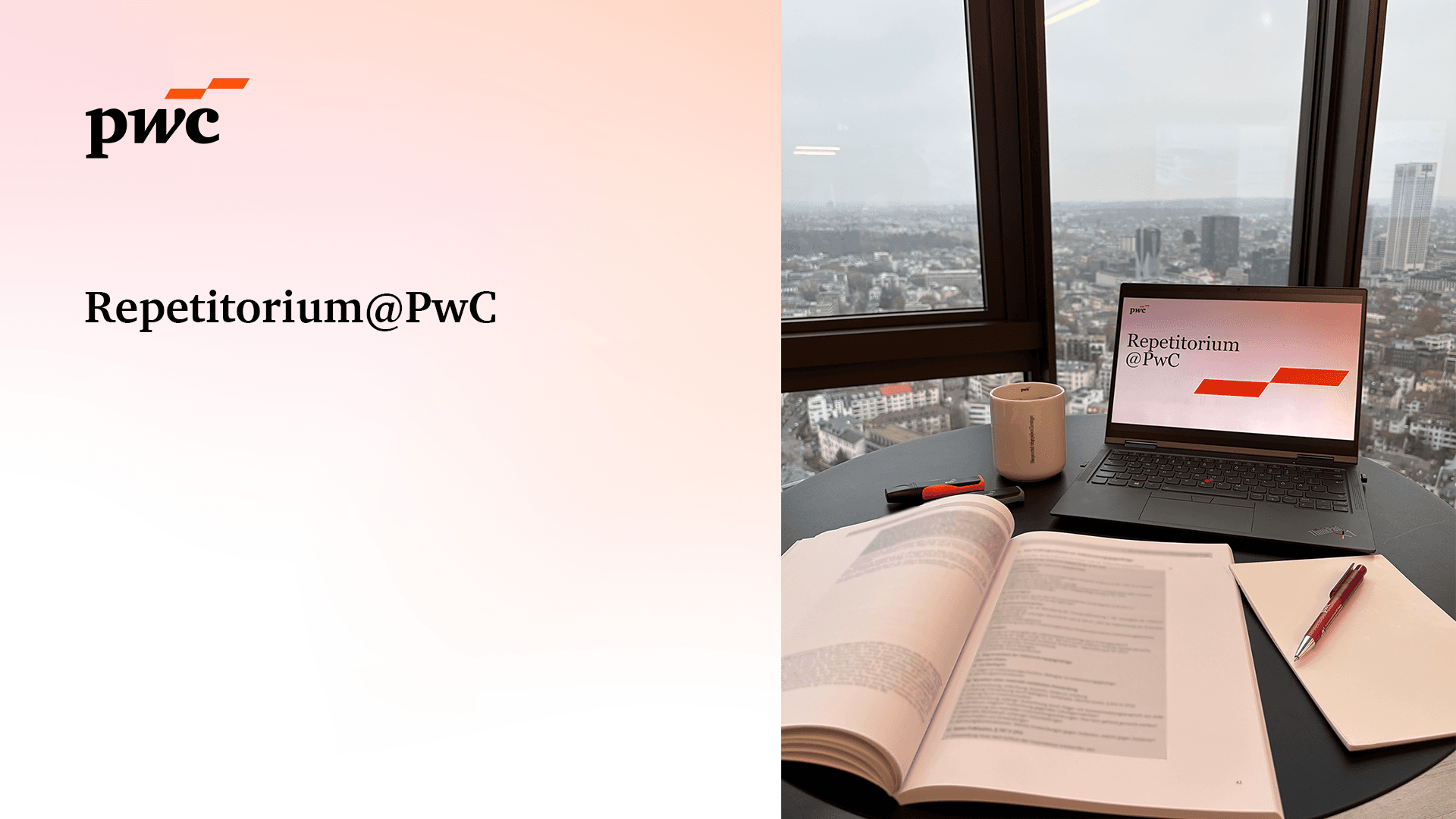 Ein ganzer Samstag im Zeichen des zweiten Staatsexamens!   Mit dem Repetitorium@PwC unterstützen wir unsere aktuellen und ehemaligen Referendar:innen sowie juristischen Mitarbeitenden gezielt bei der Examensvorbereitung. Zweimal im Jahr, im Frühjahr sowie im Herbst/Winter, bieten wir gemeinsam mit einem externen Kooperationspartner intensive virtuelle Seminare an, die praxisnah auf die Anforderungen des Examens vorbereiten.   Die Inhalte der Repetitorien wechseln je Termin und decken alle wichtigen Themenbereiche des Examens ab.    Von 9.30 Uhr bis 18 Uhr arbeiteten die Teilnehmenden online über Zoom an klausur- und examensrelevanten Inhalten. Das begleitende Skript wurde im Vorfeld per Post zur Verfügung gestellt.   Als Teil unseres Keep-in-Touch-(KIT-)Programms richtet sich das Repetitorium an alle, die bei PwC Deutschland ein Praktikum, ein Werkstudium, eine juristische Mitarbeit oder ein Referendariat absolvieren oder absolviert haben.  Auch künftig bauen wir unser Angebot zur Examensvorbereitung weiter aus: Klausurtrainings folgen bald!