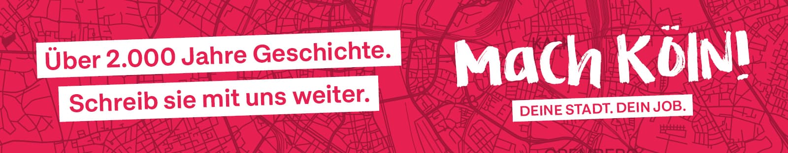Die Stadt Köln ist eine Arbeitgeberin mit rund 22.000 Kolleg*innen in zehn Dezernaten, über 80 Ämtern und in mehr als 700 Berufen. Zusammen haben wir eine Mission: Wir machen Köln! schöner, stärker, lebenswerter, bunter – kurz: besser.