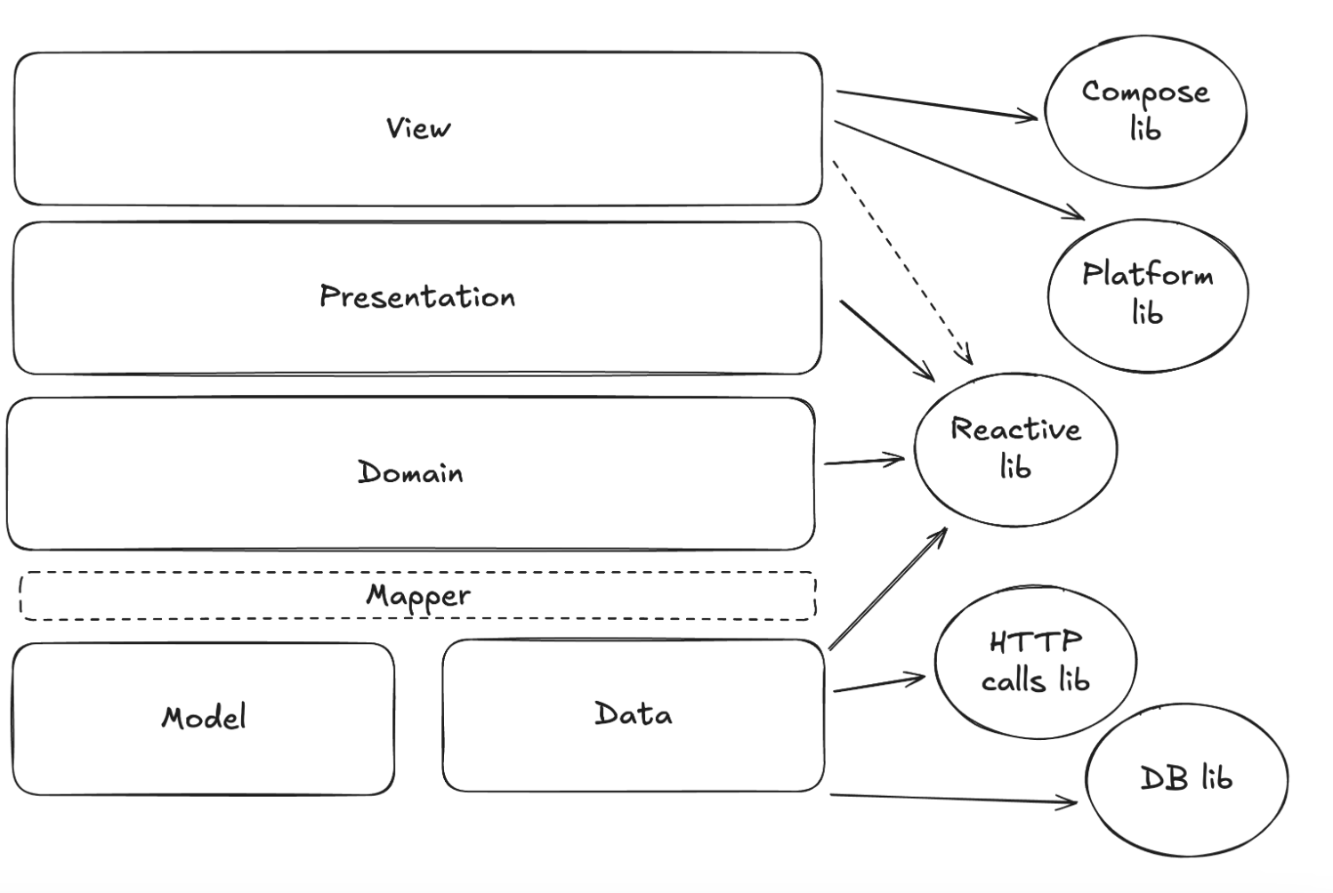 Il existe aussi des différences d’implémentation, ce qui est normal puisque iOS et Android ont chacun leurs spécificités. Pour les différences d’architecture, par contre, notez-les : cela vous aidera à estimer la difficulté de la migration progressive par couche. Plus les couches d’architecture sont différentes, plus la migration par couche sera complexe côté iOS.