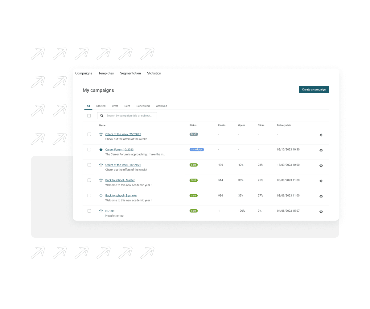 Es ist genial, denn ich kann meine eigenen, individuellen Vorlagen erstellen Es ist vielseitig, benutzerfreundlich und verleiht unserem Career Center eine echte Markenidentität. (...) Es ist entscheidend für uns, unsere Studierenden gezielt ansprechen zu können (...)