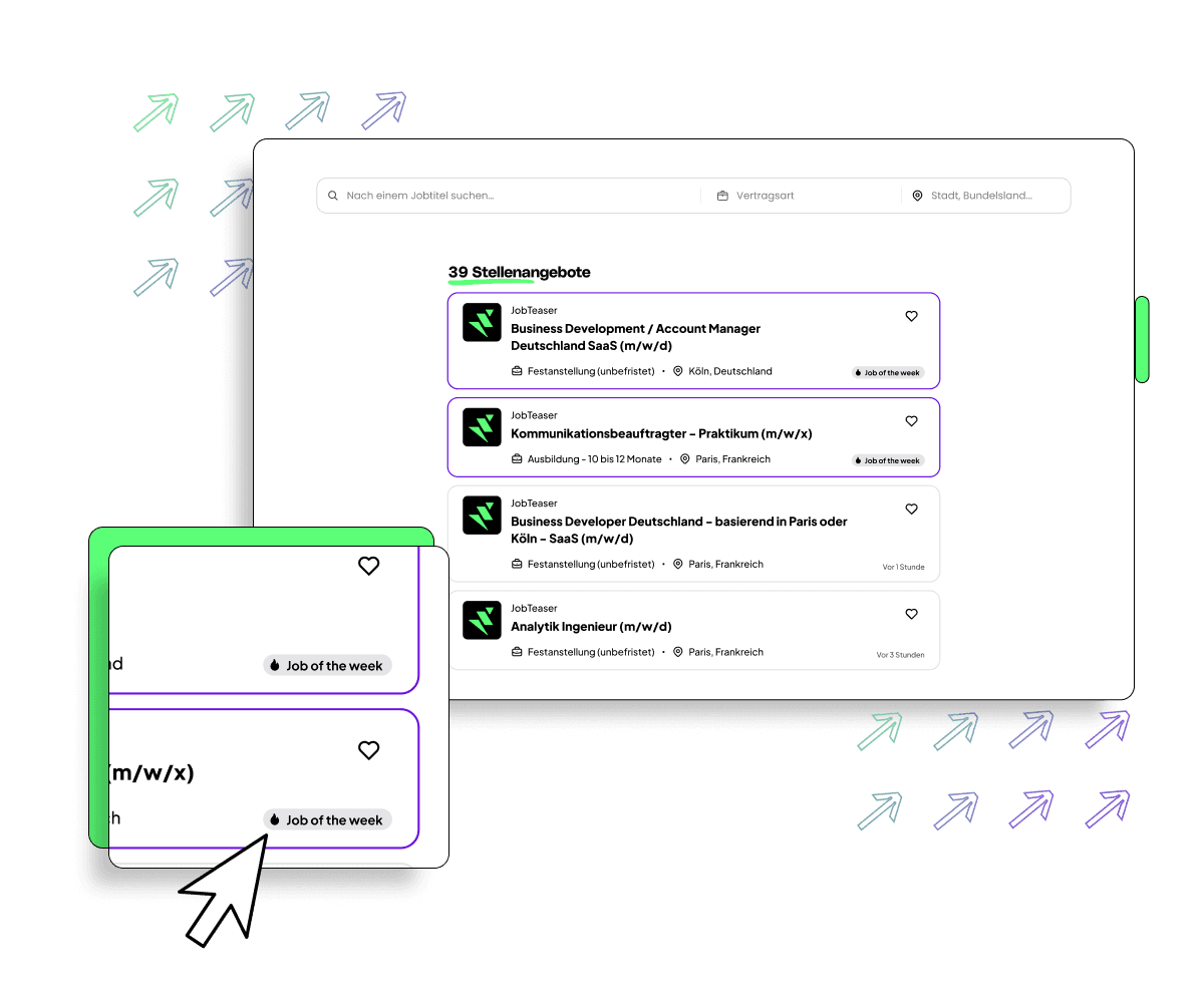 JobTeaser ist direkt in die Studierendenportale integriert und eröffnet Ihnen exklusiven Zugang zu den besten Talenten. So gewinnen Sie schnell und effizient die Young Talents, die morgen Ihr Unternehmen prägen werden.