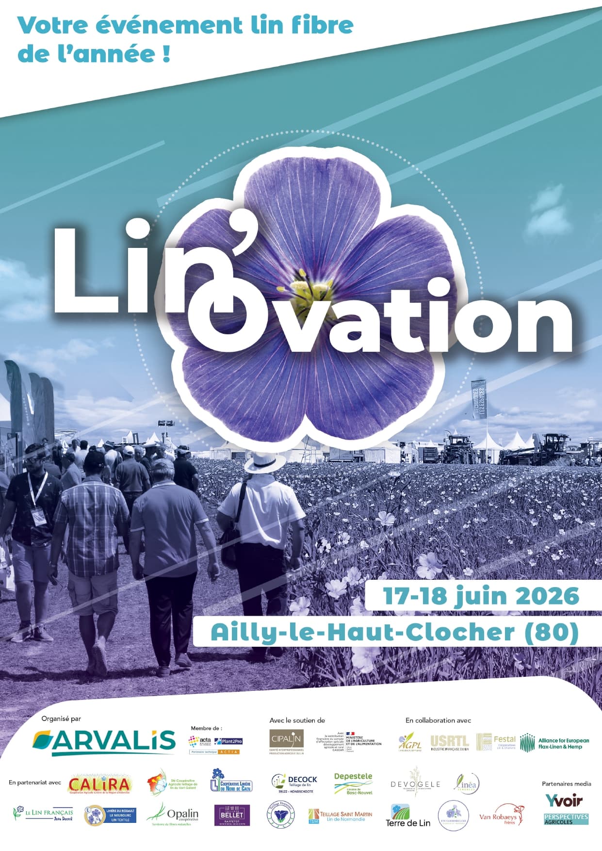 𝘚𝘢𝘷𝘦 𝘵𝘩𝘦 𝘥𝘢𝘵𝘦 - La deuxième édition de 𝗟𝗶𝗻'𝗢𝘃𝗮𝘁𝗶𝗼𝗻 aura lieu les 𝟭𝟳 𝗲𝘁 𝟭𝟴 𝗷𝘂𝗶𝗻 𝟮𝟬𝟮𝟲 à Ailly-le-Haut-Clocher (80) 👩🌾💜 Organisé par ARVALIS, Lin'Ovation est le salon agricole professionnel au champ dédié à la filière Lin fibre et chanvre textile. 🌱🧶 🚜👩🌾