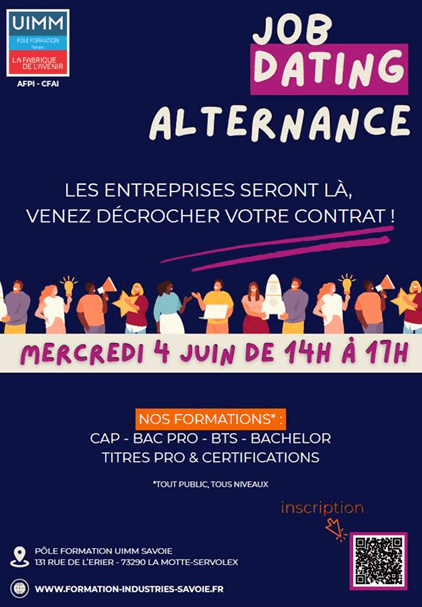 Rendez-vous le 4 juin 2025 lors du Job Dating Alternance organisé par le @Pôle Formation UIMM Savoie à La Motte-Servolex (73).