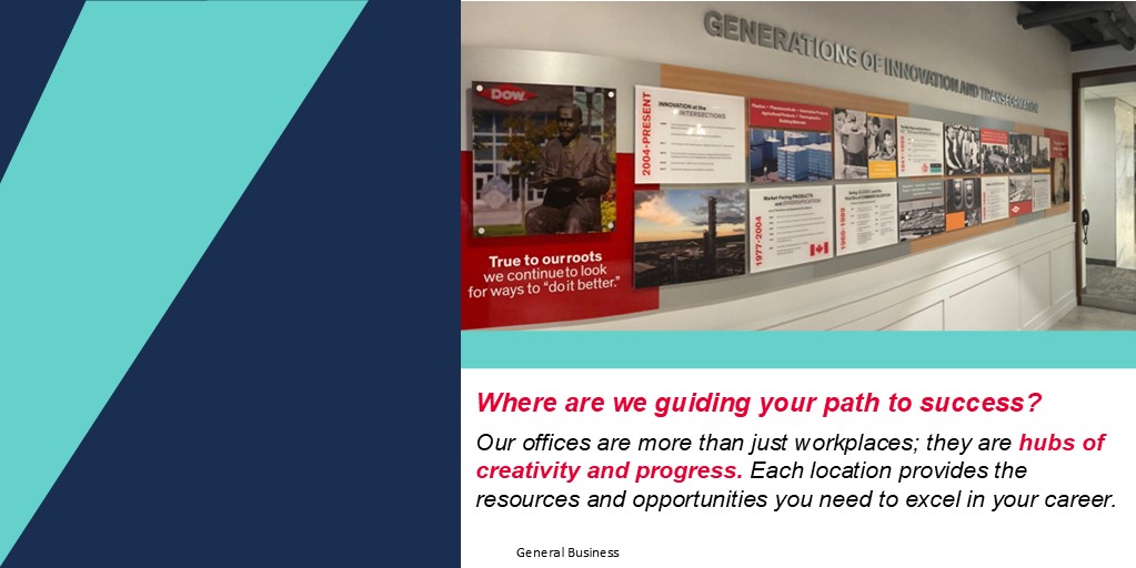 Being an international company, you’ll find us across the globe. Our offices and manufacturing sites foster innovation, collaboration, and growth. No matter where you are—Europe, Asia, the Americas, or elsewhere—you'll find a supportive and inspiring environment at Dow. Learn more about our international presence by visiting Locations | Corporate Dow .