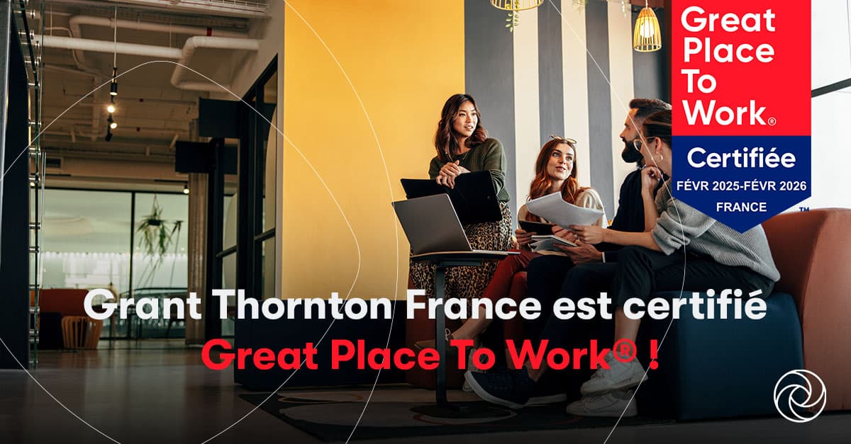 📢C'est officiel !  Nous rejoignons avec fierté les entreprises certifiées Great Place To Work® France, la première année de notre participation à cette enquête internationale. Merci à nos collaborateurs de faire de Grant Thornton un lieu de travail agréable !  Pour rejoindre un cabinet où règnent la solidarité, l’esprit d’équipe et la convivialité, consultez nos offres.