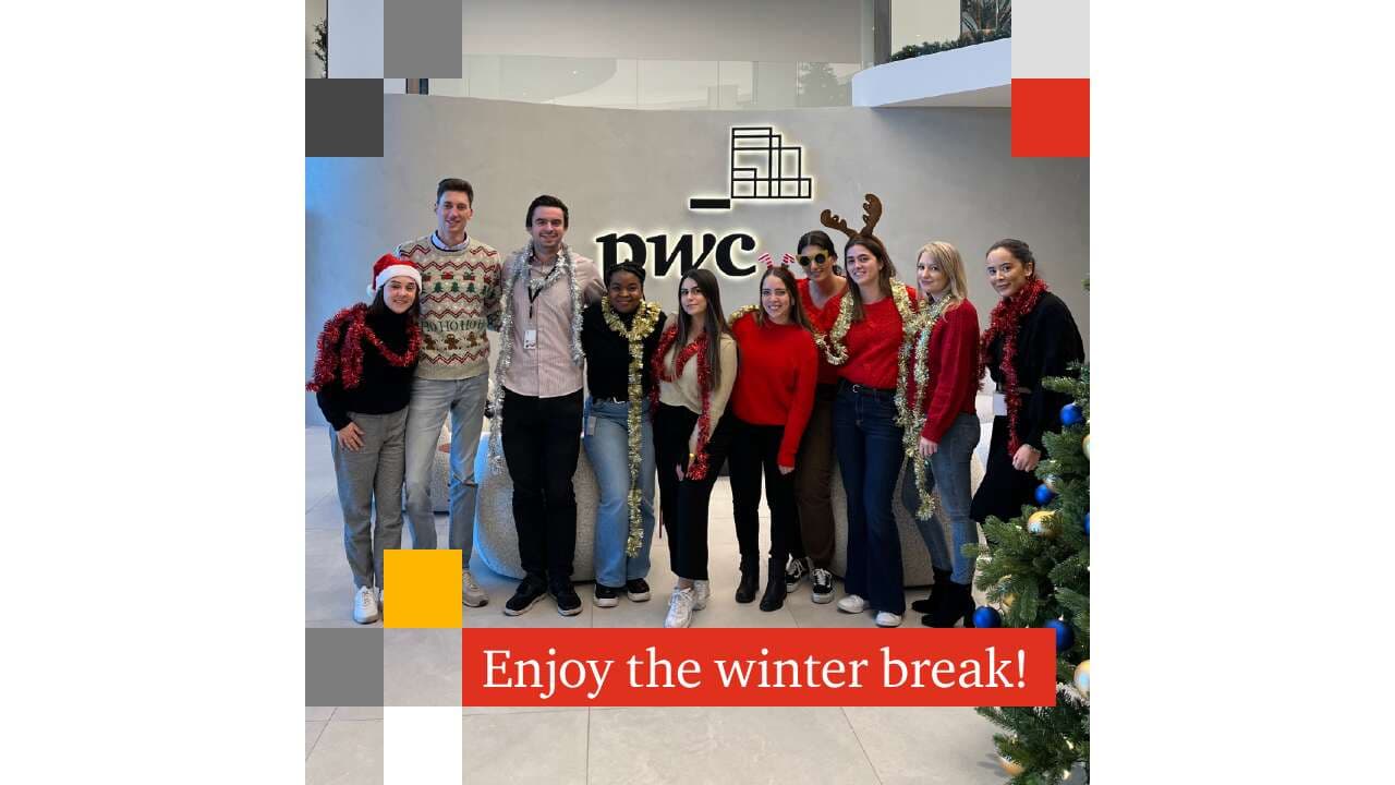 Our Talent Acquisition Team is sending their best wishes for this holiday season and for 2023 to all students! No doubt you'll celebrate and take the time to recharge your batteries for next year, but we also know that it may be mostly a study period. That's why PwC is standing with all of you and wishing you the best of luck in your upcoming exams. Keep your eyes on the prize, we know you're going to do great things in 2023!