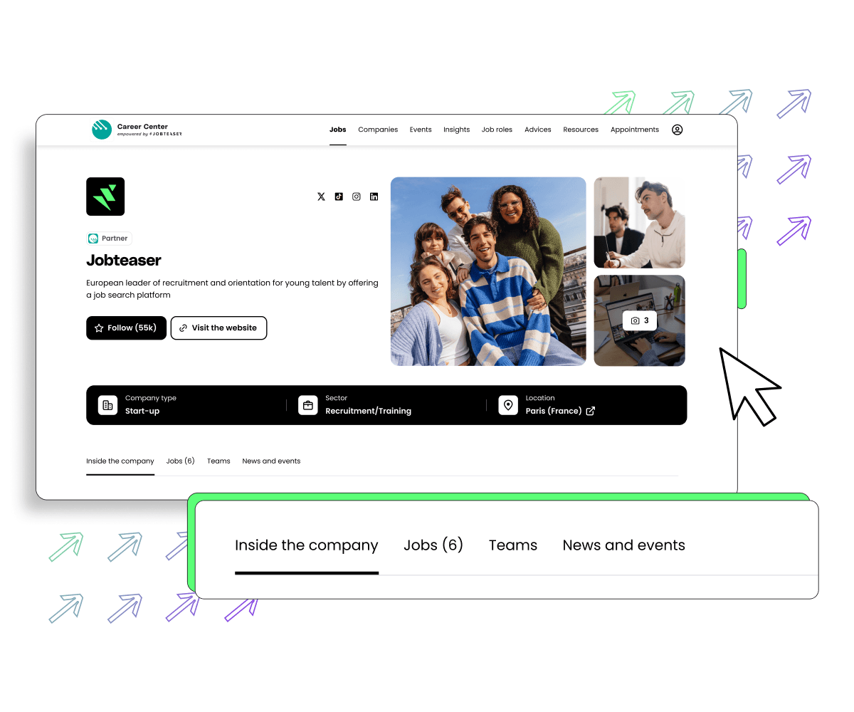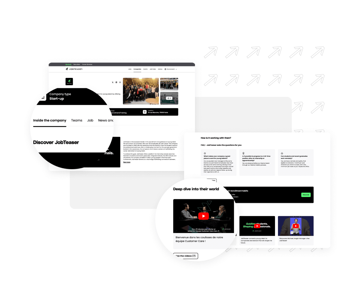 Thanks to a company page that reflects your identity, visible from the Career Centers of our 800+ partner higher education institutions and on JobTeaser.com