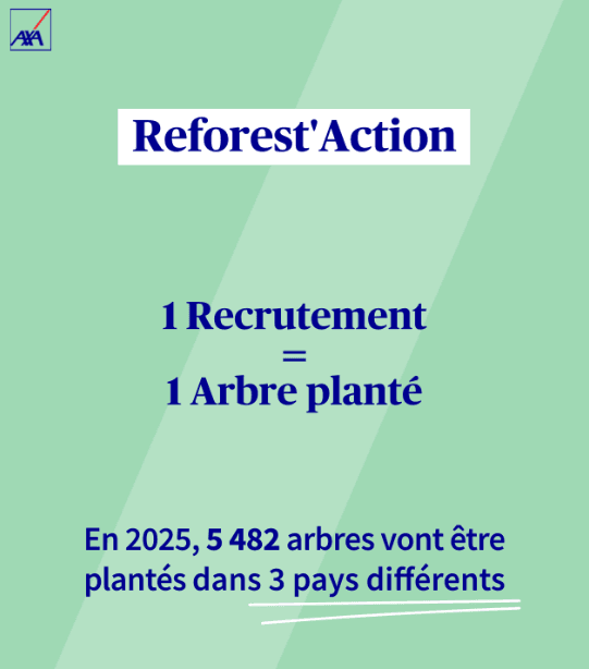 AXA est fier de renouveler, pour la 5ᵉ année consécutive, son engagement aux côtés de Reforest'Action avec l’initiative : 1 recrutement = 1 arbre planté ! 🌱 Depuis 2020, ce sont déjà 14 909 arbres qui ont pris racine à travers le monde. L'objectif cette année ? Planter 5 482 arbres supplémentaires en France, au Maroc et au Brésil. Et pour en savoir plus sur nos engagements durables ➡ https://lnkd.in/e6ScphP5