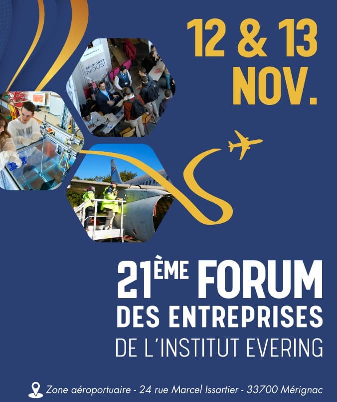 Nous serons présents lors de la 21ème édition du Forum Entreprises de l'Institut @evering le jeudi 13 novembre 2025 sur Mérignac (33). Organisé par les associations étudiantes @Vie étudiante - AMA Evering et @BDE ENSPIMA, l’évènement est ouvert aux étudiants, jeunes diplômés et alumni. #DassaultAviation #EnsemblePlusLoin Nous serons présents lors de la 21ème édition du Forum Entreprises de l'Institut @evering le jeudi 13 novembre 2025 sur Mérignac (33). Organisé par les associations étudiantes @Vie étudiante - AMA Evering et @BDE ENSPIMA, l’évènement est ouvert aux étudiants, jeunes diplômés et alumni. #DassaultAviation #EnsemblePlusLoin
