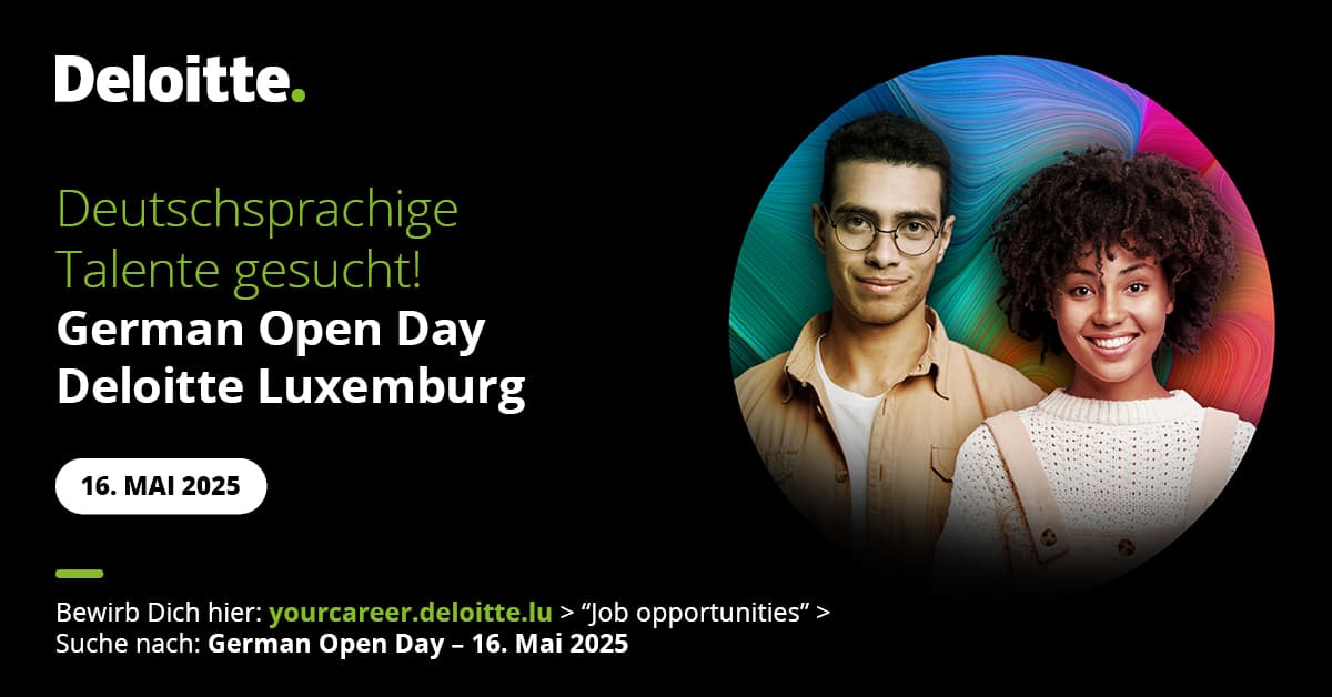 Deutschsprachige Talente gesucht! Du bist kurz davor Dein Bachelor- oder Masterstudium abzuschließen (oder hast Dein Studium gerade erfolgreich beendet) und interessierst Dich für ein Praktikum oder einen Berufseinstieg bei einer der größten Prüfungs- und Beratungsgesellschaften weltweit? Dann bewirb Dich jetzt für den German Open Day am 16. Mai 2025 in Luxemburg.