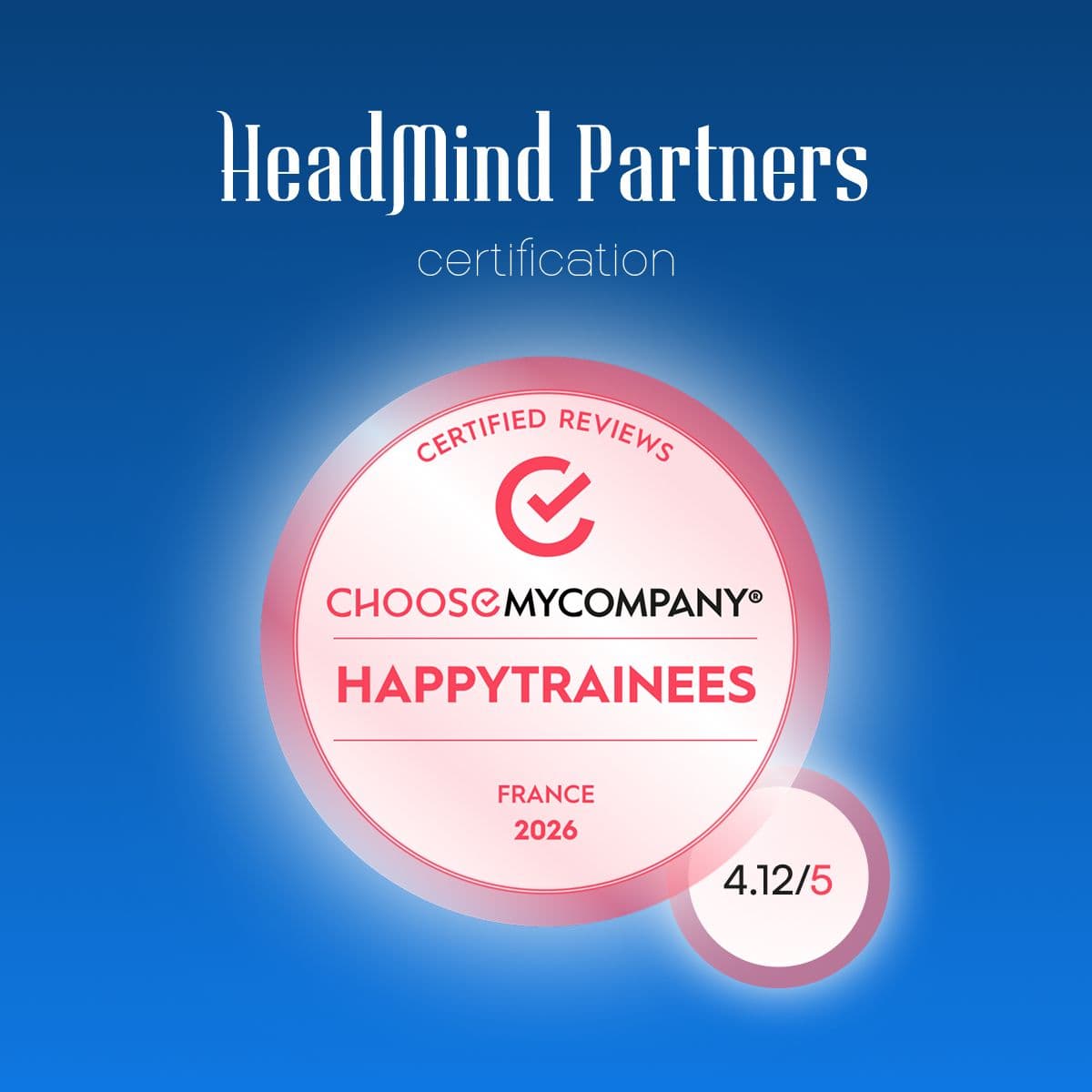 Nous sommes fiers d’annoncer que HeadMind Partners France est à nouveau certifié par ChooseMyCompany pour la qualité de l’expérience que nous offrons à nos stagiaires. 🙌