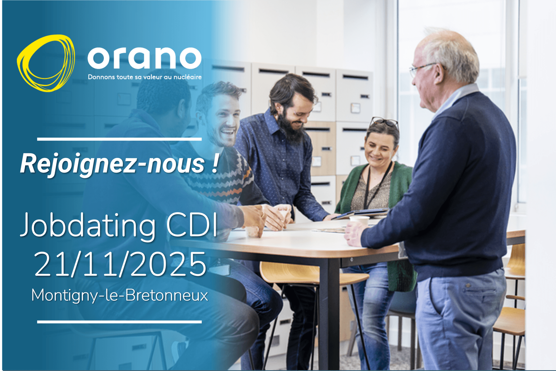 La fin d’année est le moment idéal pour se réinventer, changer de voie, et envisager de franchir des étapes importantes ! Et si, cette année, vous sautiez le pas ?  Job Dating Orano : Rejoignez les talents du nucléaire !  Orano, acteur international de référence dans le secteur nucléaire, vous donne rendez-vous pour un job dating en présentiel. Si vous souhaitez relever les défis environnementaux et technologiques d’aujourd’hui et de demain, tout en contribuant à la santé et au progrès, venez nous rencontrer à Montigny-le-Bretonneux et décrochez votre futur poste ! Chaque jour, nos 18 000 collaborateurs œuvrent pour produire une énergie bas carbone, lutter contre le réchauffement climatique et développer des solutions économes en ressources naturelles. Grâce à une maîtrise complète du cycle du combustible, Orano s’appuie sur des technologies de pointe, des expertises reconnues et une capacité d’innovation constante. Pour accompagner la relance du nucléaire français, Orano Projets, notre entité spécialisée dans la conception et la réalisation de projets complexes, recrute massivement en CDI sur une grande diversité de métiers techniques. Job Dating – Vendredi 21 novembre 2025 📍 Lieu : Locaux d’Orano Projets, Montigny-le-Bretonneux 🕗 Horaires : 8h à 19h   Une journée dédiée au recrutement avec des entretiens individuels pour des profils juniors et confirmés dans les domaines suivants : Méthodes et outils : Administrateur Outils, Ingénieur Méthodes, Chef de Projet Estimation : Estimateur Contrôle des coûts : Contrôleur de coûts Projet Modélisation du procédé : Ingénieur mécanique des fluides / thermique Documentation : Documentaliste Projet Mécanique : Ingénieur, Projeteur Installation Générale : Ingénieur, Projeteur, BIM Coordinateur Contrôle Commande : Ingénieur Électricité : Ingénieur Génie Civil : Ingénieur, Projeteur Projets : Ingénieur Projets, Chef de Projets   Comment participer ?   Postulez directement via ce lien pour solliciter un entretien. Si votre candidature est retenue, vous rencontrerez nos managers et recruteurs sur place. Impossible de vous déplacer ? Un échange à distance ou une autre date pourra être proposée. ⚠️ Pour des raisons de sécurité, seuls les candidats invités pourront accéder à l’événement. Chez Orano, nous valorisons la diversité et croyons en l’égalité des chances. Rejoignez nous et contribuez à donner toute sa valeur au nucléaire. Rendez-vous le 21 novembre !