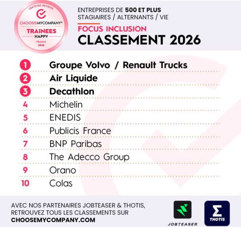 Volvo Group parmi les meilleures entreprises pour les alternants et stagiaires 🎓