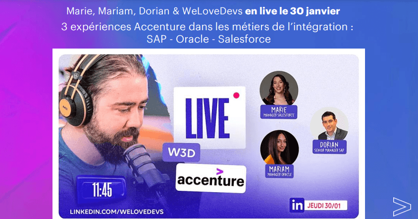 Acteur majeur du conseil et de la technologie, Accenture est le partenaire des entreprises leaders et des institutions françaises dans leur enjeux de transformation. De la vision à l’action, nos équipes accompagnent chaque client à se réinventer en alliant la technologie à l’ingéniosité humaine, et à façonner leur futur de manière durable et responsable. Le consultant en technologies conçoit et déploie des solutions qui transforment concrètement le quotidien des entreprises. Véritable lien entre les besoins métiers et les innovations techniques, il imagine, intègre et optimise des systèmes qui soutiennent la performance et la durabilité. Chez Accenture, les consultants en technologies accompagnent leurs clients dans toutes les étapes de leur transformation et réinvention digitale : de l’analyse des besoins à l’implémentation de la solution, en passant par l’adoption de solutions intelligentes. Les missions au coeur des enjeux économiques, technologiques et sociétaux actuels durent en moyenne de 6 à 24 mois. Elles donnent la possibilité de développer ses compétences dans une grande variété de secteurs, de problématiques et auprès de diverses équipes. 🎥 Maryem a rejoint Accenture en stage et poursuit son expérience en tant que Consultante SAP. Elle partage son expérience avec un seul conseil “Si vous aimez les projets variés et que vous souhaitez avoir un impact dans la digitalisation des entreprises, ce métier est fait pour vous. ” . Rejoignez nos équipes : Postuler dès maintenant