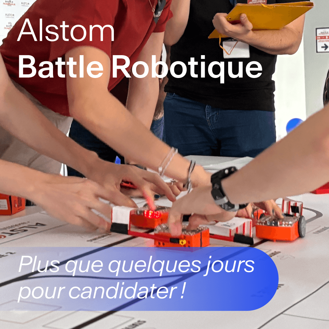 L’Alstom Battle Robotique approche !  ⏳ Il ne vous reste que quelques jours pour candidater.  Pour l’occasion, retour en images sur les précédentes éditions et découvrez ce qu’est vraiment la compétition :   Un vrai défi robotique & signalisation ferroviaire Des échanges avec des ingénieurs Alstom Des prix jusqu’à 1 000 €  … et surtout, faire briller votre équipe ✨   Envie de tenter votre chance ?  Inscrivez-vous 👉 https://lnkd.in/eBfYK7-e   hashtag#AlstomBattleRobotique hashtag#Robotique hashtag#ChallengeÉtudiant hashtag#Engineering hashtag#Mobilité hashtag#JoinUs hashtag#Villeurbanne hashtag#SaintOuen
