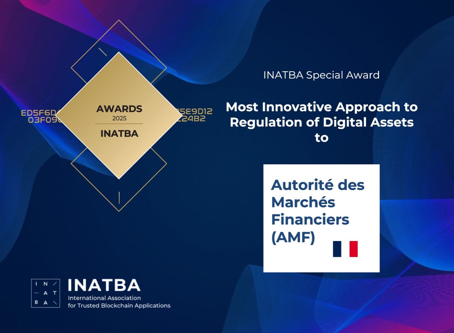 L’INATBA a annoncé avoir décerné un prix à l’AMF pour son « approche globale en matière d'agrément qui reflète son engagement à favoriser un écosystème d'actifs numériques sécurisé et innovant en France, en Europe et au-delà. Grâce à des recherches approfondies et à des consultations ouvertes sur la DeFi, l'AMF a réussi à équilibrer la protection des investisseurs avec le progrès technologique, établissant une référence pour une réglementation avant-gardiste à l'échelle mondiale. »