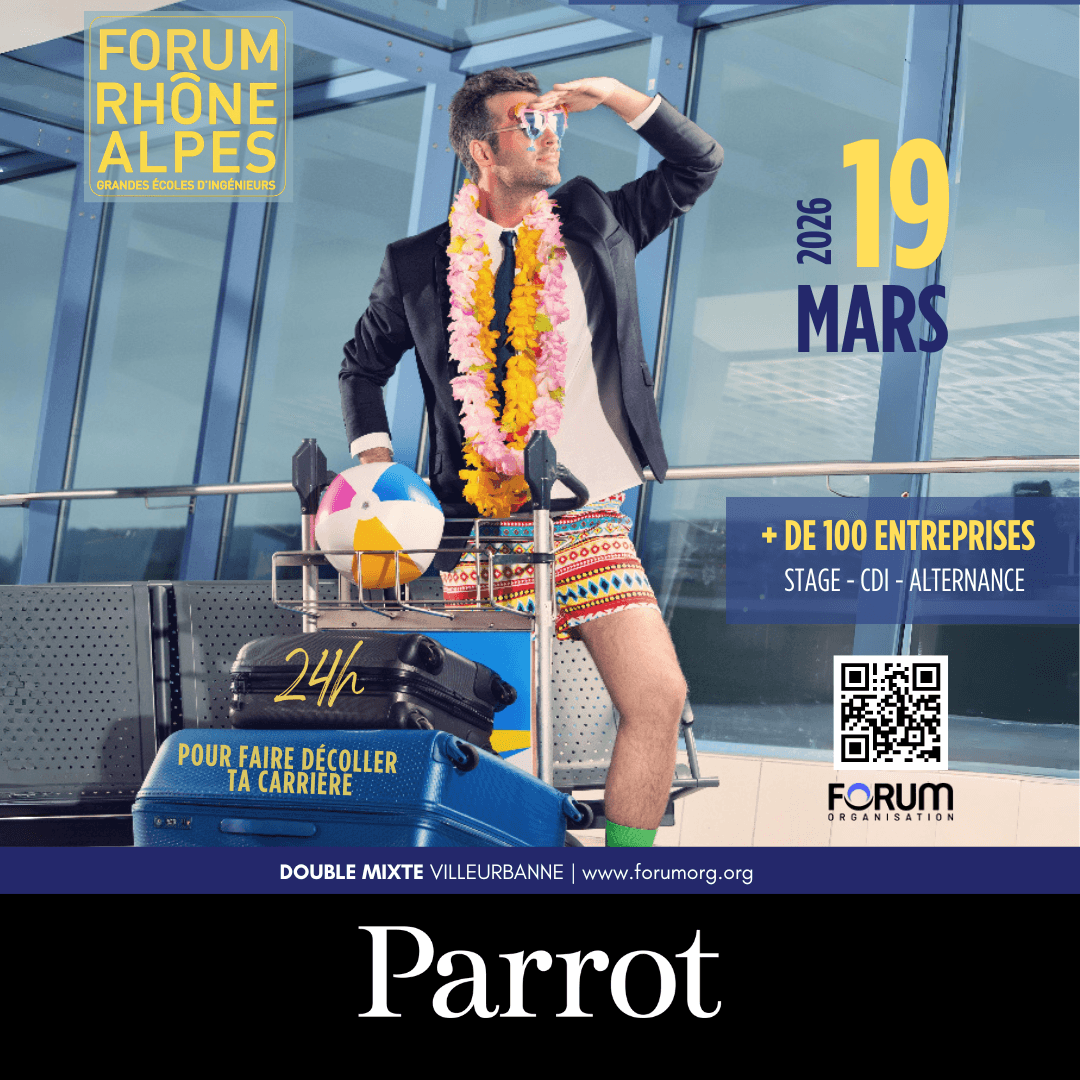 Retrouvez Parrot au Forum Rhône-Alpes 2026 ! Notre équipe sera présente au Forum Rhône-Alpes le 19 mars pour vous rencontrer, vous faire découvrir nos produits et échanger autour de nos opportunités pour participer au développement de drones professionnels innovants. Étudiants et jeunes diplômés, venez discuter avec nous de vos projets, de nos métiers et des carrières possibles à Parrot. Rendez-vous au stand Parrot de 9h à 18h au Double Mixte (Villeurbanne) Plus d’infos sur l’événement : Forum Organisation | Salons et forums de recrutement étudiants   Nous avons hâte de vous rencontrer !