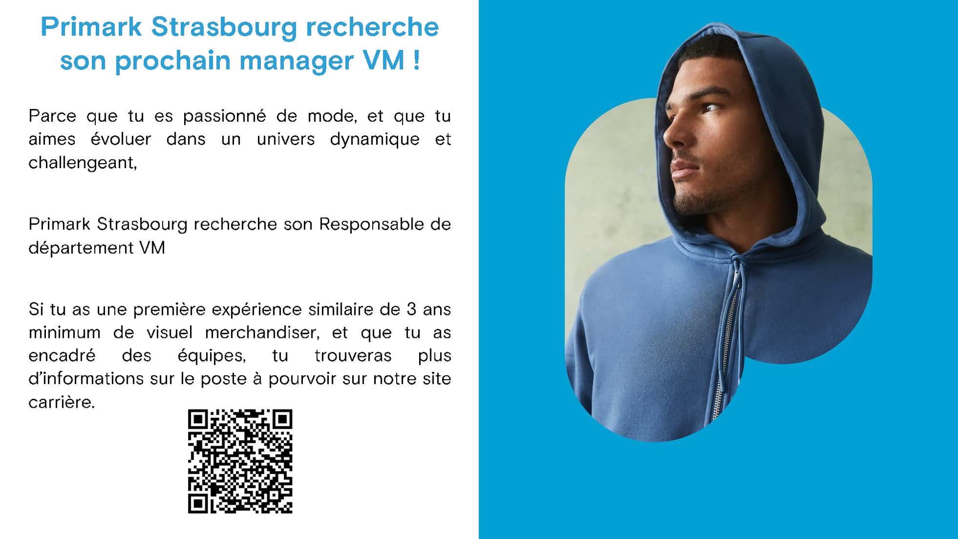 Responsable Visuel Manager Magasin Depuis son tout premier magasin en Irlande, Primark doit son succès à un modèle unique proposé à ses clients : ne plus avoir à choisir entre des prix accessibles et des produits de qualité (mode, beauté et maison). Primark France poursuit son développement et compte déjà plus de 7000 collaborateurs. Venez participer à cette formidable aventure ! Aujourd'hui, nous recrutons un : RESPONSABLE DE DÉPARTEMENT VISUAL MERCHANDISING Poste basé à Strasbourg VOTRE RÔLE ? Dans un magasin de plus de 300 salariés vous êtes responsable de l’application des principes de merchandising dans le magasin tout en étant garant de l’identité visuelle de l’enseigne. Vous contribuez à mettre en valeur les collections en optimisant le merchandising pour développer le chiffre d’affaires. Dans votre domaine, vous conseillez le personnel du magasin et les formez sur le visuel merchandising. Pour ce faire vous êtes rattaché à la direction du magasin et assurez les missions suivantes : C’EST-À-DIRE ? Identités visuelles Implanter ou organiser les zones événementielles en fonction des opérations commerciales en cours ; Théâtraliser et mettre en avant les nouvelles collections et les campagnes dans les espaces dédiés (vitrines et surface de vente) ; Contrôler le respect de l’identité visuelle dans le magasin et l’application des principes de merchandising ; Accompagner les équipes de vente dans la réalisation du merchandising ; Assurer une veille concurrentielle ; Suivre les tendances actuelles mode et décoration d'intérieur. Gestion Suivre les budgets des départements du magasin ; Gérer les commandes de produits ; Suivre les commandes des PLV ; Gérer le parc des mannequins du magasin (inventaire, suivi, entretien). Management Recruter et intégrer les nouveaux employés VM ; Coordonner et animer votre équipe ; Accompagner vos collaborateurs et s'assurer du développement de leurs compétences ; Impulser une dynamique créative dans l’équipe. POURQUOI NOUS REJOINDRE ? Pour bénéficier d’un accompagnement constant à travers des formations adaptées ; Pour gérer de grandes équipes et des volumes uniques de marchandises dans le commerce de détail ; Pour vivre une aventure au sein d’un groupe en pleine croissance qui vous offrira de multiples possibilités d’évolution. Pour notre salaire attractif (fixe + 13ème mois après un an d’ancienneté + prime de participation…). ET VOUS ? Issu d'une formation spécialisée en visuel merchandising, vous bénéficiez d'une expérience similaire de 3 ans minimum, idéalement acquise dans un environnement dynamique du secteur du prêt-à-porter. Vous êtes passionné de mode et éprouvez un réel intérêt pour le commerce. Véritable leader, vous avez encadré avec succès une équipe d'employés VM. Vous vous reconnaissez dans ce descriptif et vous aspirez à rejoindre un groupe en plein développement en France ? N'hésitez plus et postulez ! Primark, pour toi, pour moi, pour nous… Soyons Extraordinaires Ensemble. Chez Primark, tout le monde est invité à faire en sorte que chacun se sente à l'aise à être soi-même ... en tant que collègues, en tant que clients, en tant que personnes. Parce que depuis longtemps nous croyons à la richesse de la diversité des talents, nous offrons à tous nos candidats les mêmes opportunités d’accès à l’emploi sans distinction de genre, d’ethnicité, de religion, d’orientation sexuelle, de statut social, de handicap et d’âge etc. Travailler tous ensemble quelles que soient nos différences, c’est une des clés de notre réussite.