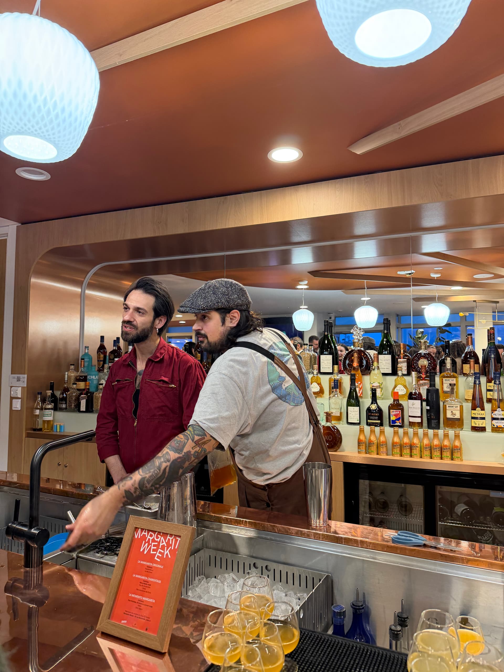 Derrière le bar, Matteo et Joaquin (Memento Marais) ont proposé plusieurs versions revisitées de la Margarita, dont une création originale au whisky Port Charlotte Islay Single Malt. Spoiler : ça valait le détour