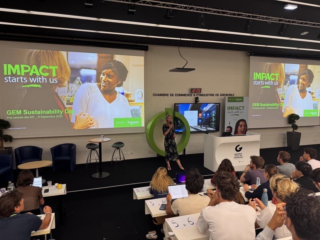 Pour le GEM Sustainability Day, nous avons embarqué plus de 400 étudiants M1 dans l’univers Schneider Electric. ️ ✨ Au programme : 🎤 Des talks inspirants avec nos leaders 💡 Un Business Challenge autour des achats durables 🔎 Une immersion dans nos solutions et nos innovations 🤝 Des rencontres privilégiées avec nos experts Un grand merci à toutes nos équipes mobilisées et à GEM pour cette collaboration de longue date. Former les talents de demain, c’est aussi préparer un futur plus durable.