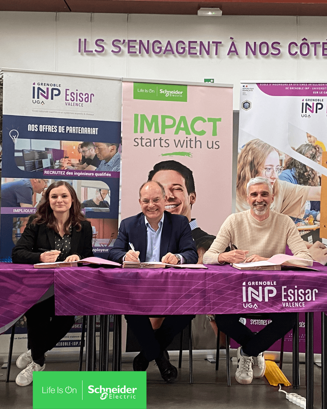 🤝 Schneider Electric et l’ESISAR signent un partenariat pour accompagner les futurs ingénieurs dans leur développement professionnel. À travers ce partenariat, Schneider Electric contribuera à la professionnalisation des étudiants, notamment à travers :