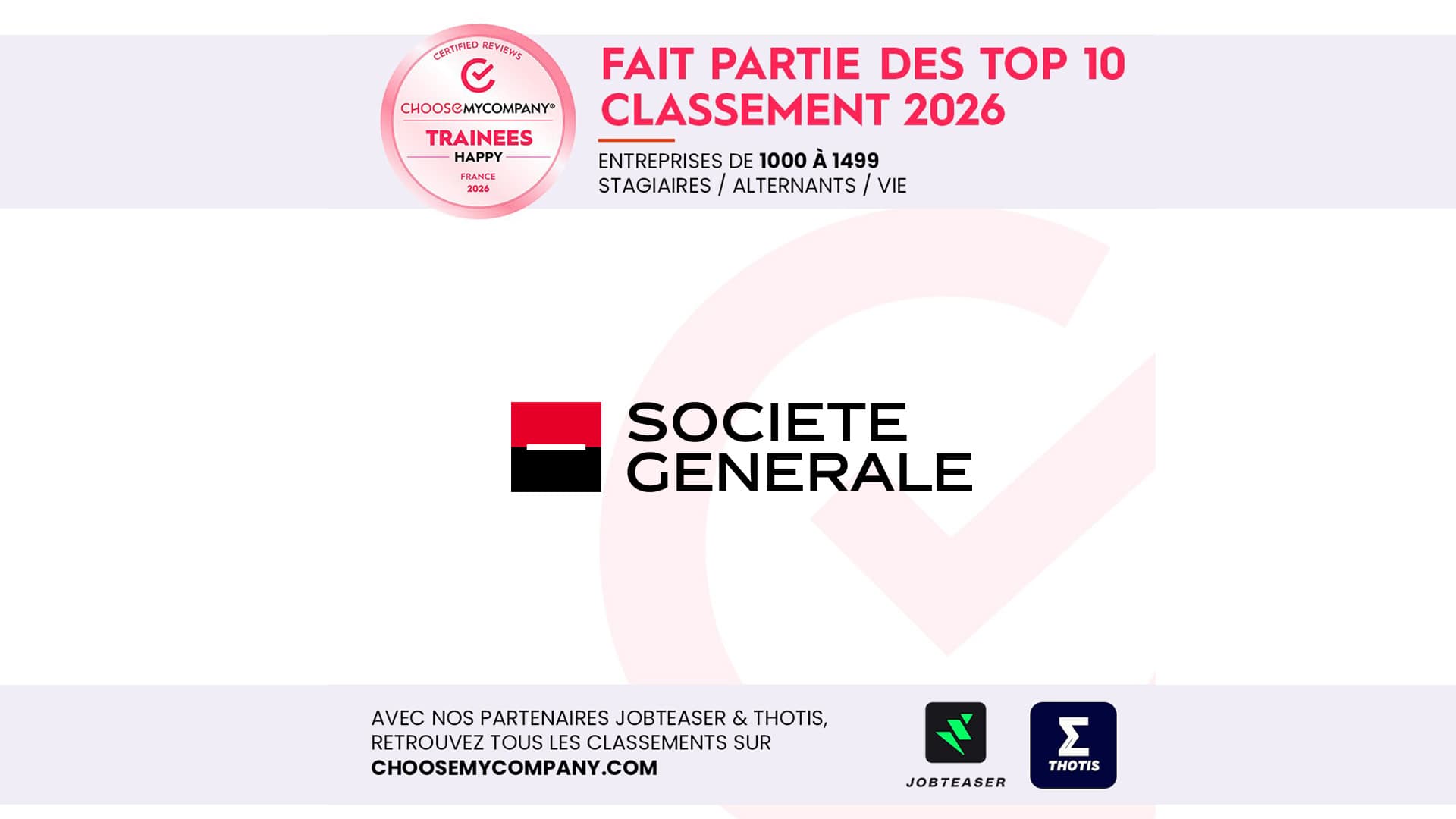 Chaque année, le Groupe accueille 2000* jeunes en stage, en alternance et en VIE et 87% d’entre eux** recommandent Société Générale cette année. Opportunités d’apprentissage, diversité et implication dans des projets concrets, feedback régulier de leurs tuteurs… telles sont les sujets valorisés par nos jeunes. C’est une belle récompense pour nos tuteurs et managers dans leur travail d’accompagnement et de formation quotidien ! Pour en savoir plus sur nos opportunités à pourvoir : https://careers.societegenerale.com/ * 1300 jeunes ont reçu l’enquête **d’après l’enquête HappyIndex®Trainees 2026