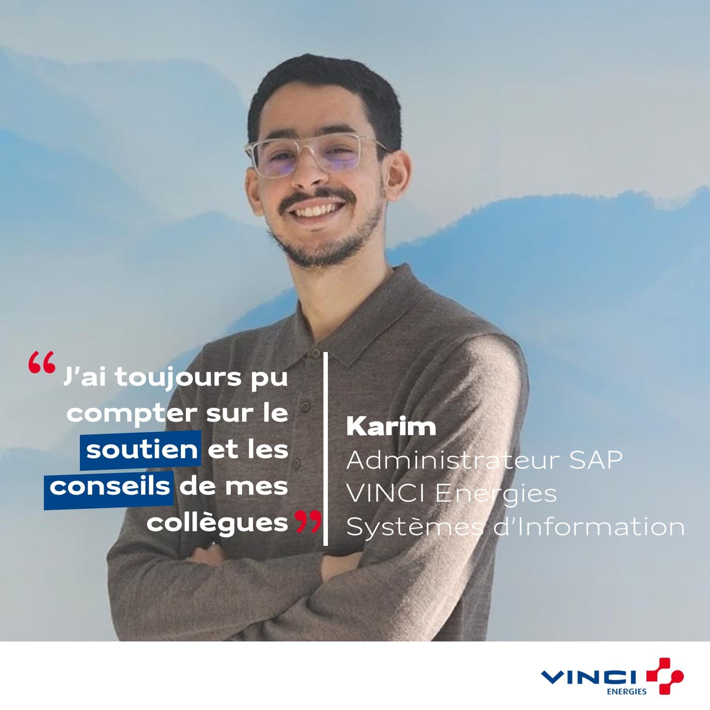 Nouvelle Success Story SI : Karim, ancien alternant aujourd’hui en CDI, nous parle de son parcours et de son expérience au sein de VESI ! Peux-tu te présenter ? 📢 Je m’appelle Karim. J’ai réalisé un Master Informatique à l’Université de Pau et des Pays de l'Adour (UPPA), où j’ai pu développer de solides compétences en systèmes d’information et en technologies informatiques. Dans le cadre de cette formation, j’ai effectué mon alternance en tant qu’Administrateur SAP Basis au sein de la Direction Codex, dans l’équipe DevOps, chez Vinci Energies Systèmes d'Information (VESI). À l’issue de mon alternance, je poursuis aujourd’hui l’aventure en tant qu’Administrateur SAP Basis au sein de la même équipe. Quel est ton rôle chez VESI ? Chez VESI, j’occupe le poste d’Administrateur SAP Basis au sein de la Direction Codex, dans l’équipe DevOps. Mon rôle consiste à administrer et maintenir les systèmes SAP afin de garantir leur bon fonctionnement, leur performance et leur disponibilité pour tous les utilisateurs. Au quotidien, je m’occupe notamment de la surveillance des systèmes SAP, de la gestion des transports, ainsi que de la résolution d’incidents techniques. Comment résumerais-tu ton alternance chez VESI en 3 mots ❓ Apprentissage, collaboration, responsabilité. Qu’as-tu le plus apprécié durant ton alternance ? J’ai particulièrement apprécié l’esprit d’équipe et l’entraide au sein de mon équipe, où j’ai toujours pu compter sur le soutien et les conseils de mes collègues. Qu’est ce qui t’a donné envie de rester en CDI ? 🤝 J’ai apprécié la manière dont les collaborateurs sont accompagnés et la confiance qui est accordée, même quand on débute. Ça m’a permis de progresser rapidement et de prendre de plus en plus de responsabilités. Tout ça m’a donné envie de continuer l’aventure chez VESI et de m’inscrire dans la durée pour continuer à évoluer et apprendre. Recommanderais-tu VESI à ton entourage ? Oui, je recommanderais VESI à mon entourage ! Notamment aux personnes qui souhaitent évoluer dans le domaine de l’IT et découvrir des environnements techniques comme SAP. As-tu quelque chose à ajouter ? 👀 Mon conseil serait de rester curieux, de ne pas hésiter à poser des questions et de s’impliquer dans les projets.