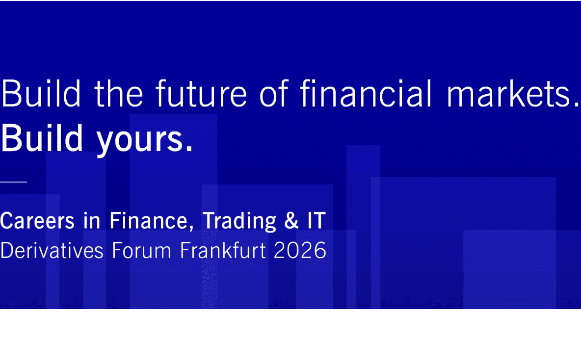 Join us on the 26th of February for an exclusive career event at the  Derivatives Forum Frankfurt 2026!  This year, we will once again highlight the collaboration between finance and IT, welcoming students from both fields.  This year’s event is hosted by Deutsche BörseGroup, featuring Eurex and 360T and highlighting diverse opportunities for your future career.  The event will take place at Messe Frankfurt from 1:30 – 6:30 PM on February 26th 2026.    Your Benefits:   Gain Insights: Learn about the latest trends and innovations in finance and IT from top experts  Explore Career Paths: Discover various career opportunities and present your skills and knowledge to leading companies in the industry  Showcase Your Talent: Build valuable connections with peers and potential employers  Free of Charge: Participation in this event is completely free for students. Are you studying finance and IT? Are you passionate about financial markets? Do you want to connect with industry leaders and explore exciting career opportunities in the field of Finance or IT?  Then make sure to check out our website and register for the event by 6 February 2026!
