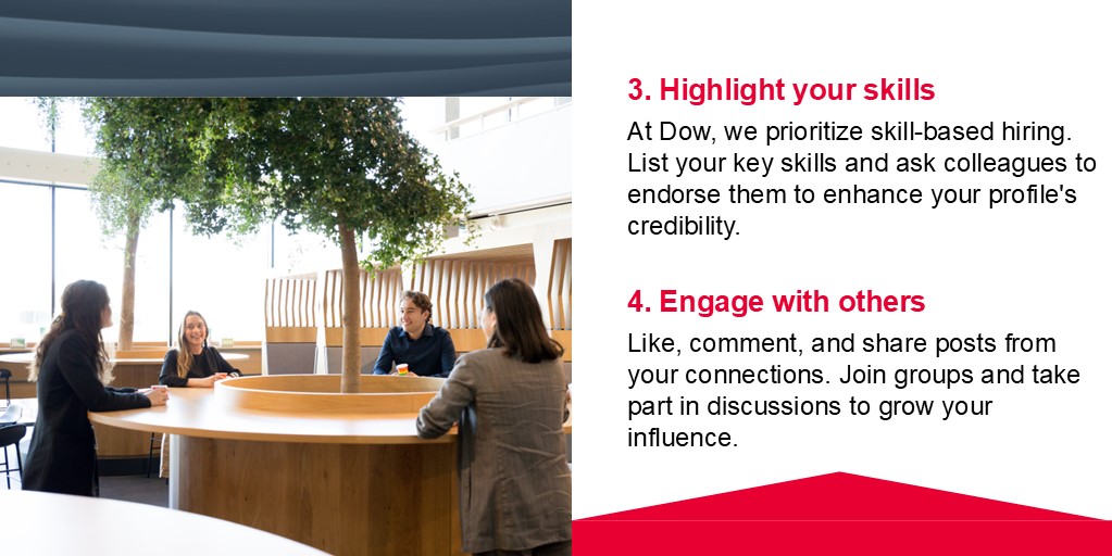 At Dow, we understand the importance of a robust professional presence. A well-crafted LinkedIn profile not only boosts your visibility but also unlocks numerous opportunities in the talent market.
