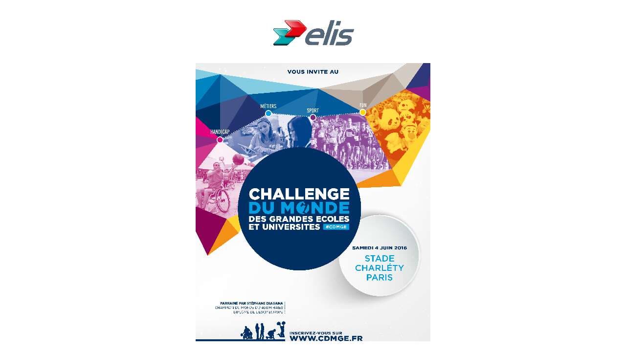 Etudiants et jeunes diplômés, ne ratez pas la prochaine édition du Challenge du "Monde des Grandes Ecoles et Universités » le samedi 4 juin au Stade Charlety (Paris) ! Vous pourrez y rencontrer les collaborateurs ELIS lors d'une journée unique alliant sport et recrutement.