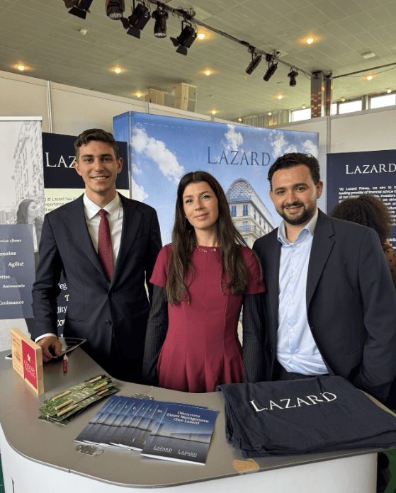 Je tiens également à remercier Axel Laroza, Romain Costa, Gaspard Sauvage, Noah Malka, Blanche de Sédouy et Augustin Bigeard pour leur présence précieuse. Ils ont contribué à faire découvrir aux étudiants les métiers, la culture, les valeurs et les opportunités de stages chez Lazard Frères Gestion et Lazard Frères Banque.