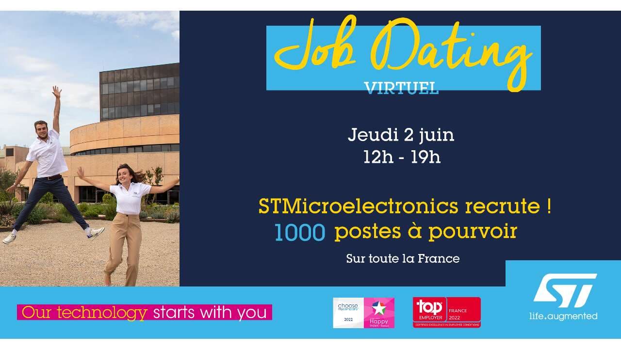 Inscrivez-vous au tout premier Job Dating Virtuel STMicroelectronics France pour booster votre carrière : ➡️ https://bit.ly/3NpqR4F ⬅️