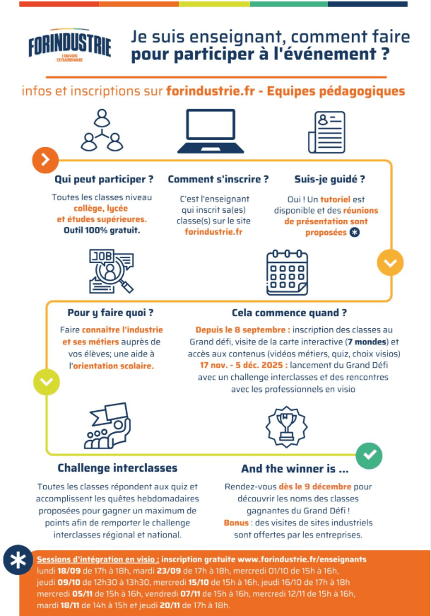 𝐕𝐨𝐮𝐬 𝐞̂𝐭𝐞𝐬 𝐞𝐧𝐬𝐞𝐢𝐠𝐧𝐚𝐧𝐭𝐬 𝐞𝐧 𝐜𝐨𝐥𝐥𝐞̀𝐠𝐞𝐬, 𝐥𝐲𝐜𝐞́𝐞𝐬 𝐨𝐮 𝐞𝐧𝐬𝐞𝐢𝐠𝐧𝐞𝐦𝐞𝐧𝐭 𝐬𝐮𝐩𝐞́𝐫𝐢𝐞𝐮𝐫 𝐞𝐭 𝐯𝐨𝐮𝐥𝐞𝐳 𝐩𝐚𝐫𝐭𝐢𝐜𝐢𝐩𝐞𝐫 𝐚̀ 𝐅𝐨𝐫𝐢𝐧𝐝𝐮𝐬𝐭𝐫𝐢𝐞 ?